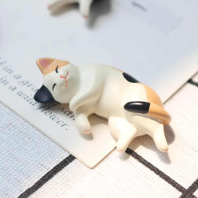 6pcs Kawaii Resin Mini Sleeping Cat Mini Figures Miniature Things Statues Dollhouse Room Home Decor Items Desk Accessories